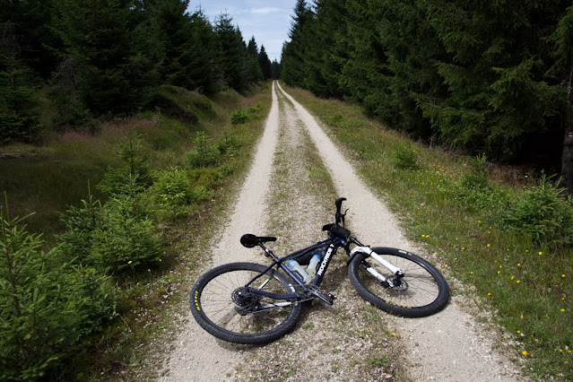 Po přemíře asfaltu jsem hledal zábavnější terrain, místy byl na hraně sjízdnosti nebo za ní. Ze Souše do Kořenova a hezkou kamenitou trasou po žluté k Jizeře. Podél řeky pod Bukovec a přes Jizerky k Pytláckým kamenům. Potom kolem jezírka Sant a Klínového vrchnu (výhledy na Krkonoše) na Smědavu a přes Knejpu a Protrženou přehradu do Souše [48 km]. Nice ride!